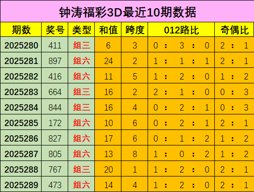上期012路比为1:2:0,近10期总比值7:16:7,1路出号较热;本期预测0路号码出号较热,推荐012路比为2:0:1。