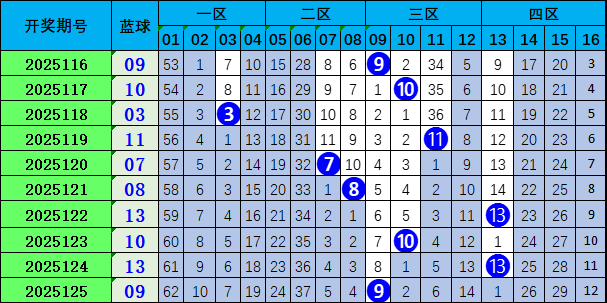 上期蓝球开出大码号码09,近十期蓝球大小比为7:3,大码球出现次数较多,本期预测大码蓝球热出,重点关注号码:16。