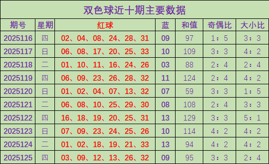 和值分析:上期红球开出和值是95,近十期和值平均值上升,和值平均值是101.7,上期和值低于平均值,本期预测和值变化趋势较大,看好和值区间在100-105之间。