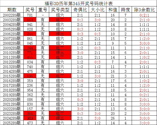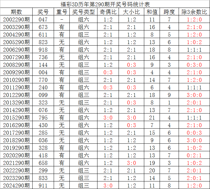 其中,组三号码开出9次,组六号码出现14次,组六号码目前连续3年没有出现,本期今年同期看好开出组六号码。