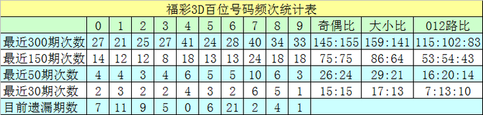 百位分析:最近50期表现较热的号码有:7出现10次,4、8出现6次;表现较冷的号码有:2、9出现3次,0、1、3出现4次。出号奇偶比为26:24,012路比为16:20:14。本期该位绝杀两码4、7,参考号码2、8、9,精选一码9。