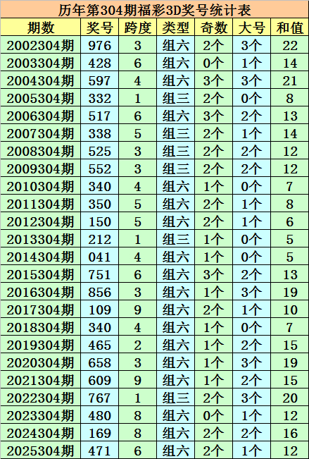 在以上奖号中奖,历年第305期福彩3D出现7次组三,出现16次组六。组六开出比例较高,本期继续关注组六。