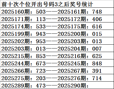 四、个位分析:上期开出号码3,前10次号码3出现之后下期同位号码为:8665375814龙门国际平台,其中号码大小比为7:3,大号走势活跃;奇偶比为5:5,相等;012路比为3:3:4,2路号码走温。本期参考号码:5。
