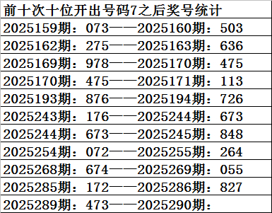 三、十位分析:上期开出号码7,前10次号码7出现之后下期同位号码为:0371274652,其中号码大小比为4:6,基本相当;奇偶比为5:5,相等;012路比为3:4:3,0路号码走温。本期参考号码:0。